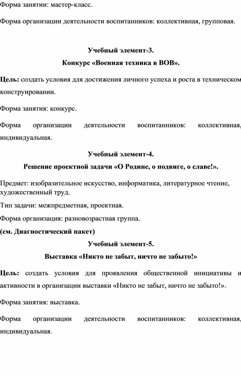 Формы организации деятельности воспитанников: