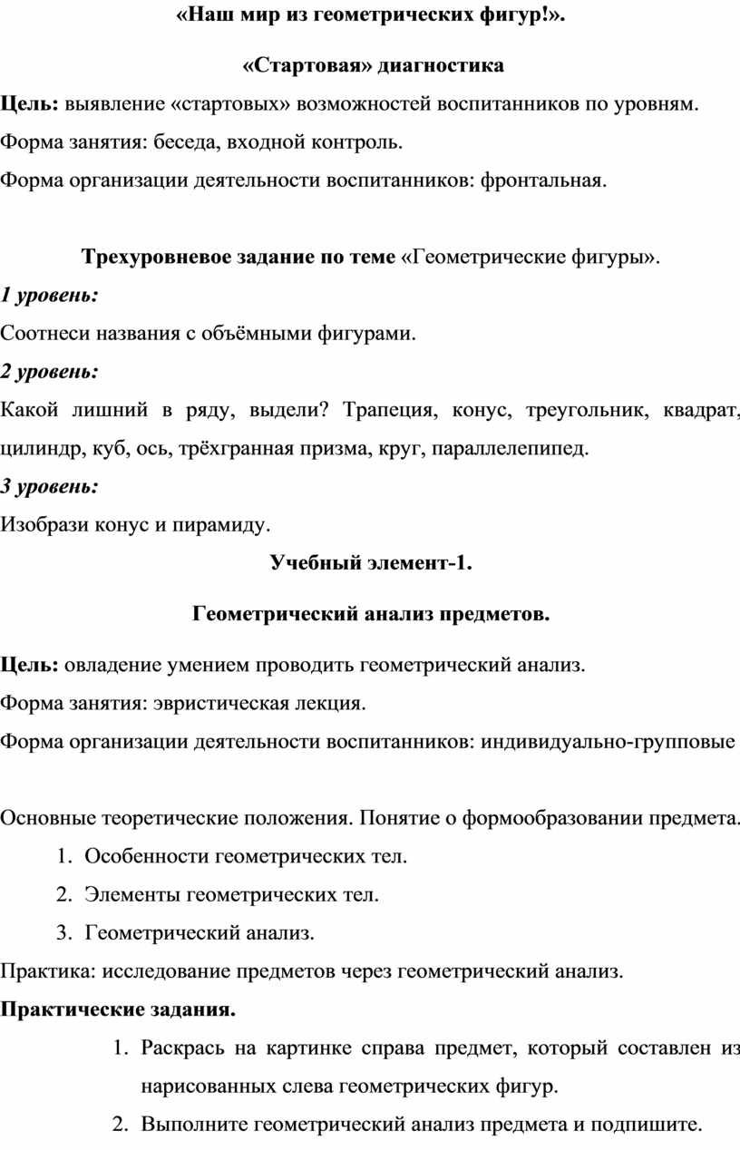 · Обучить навыкам геометрического анализа форм предметов;