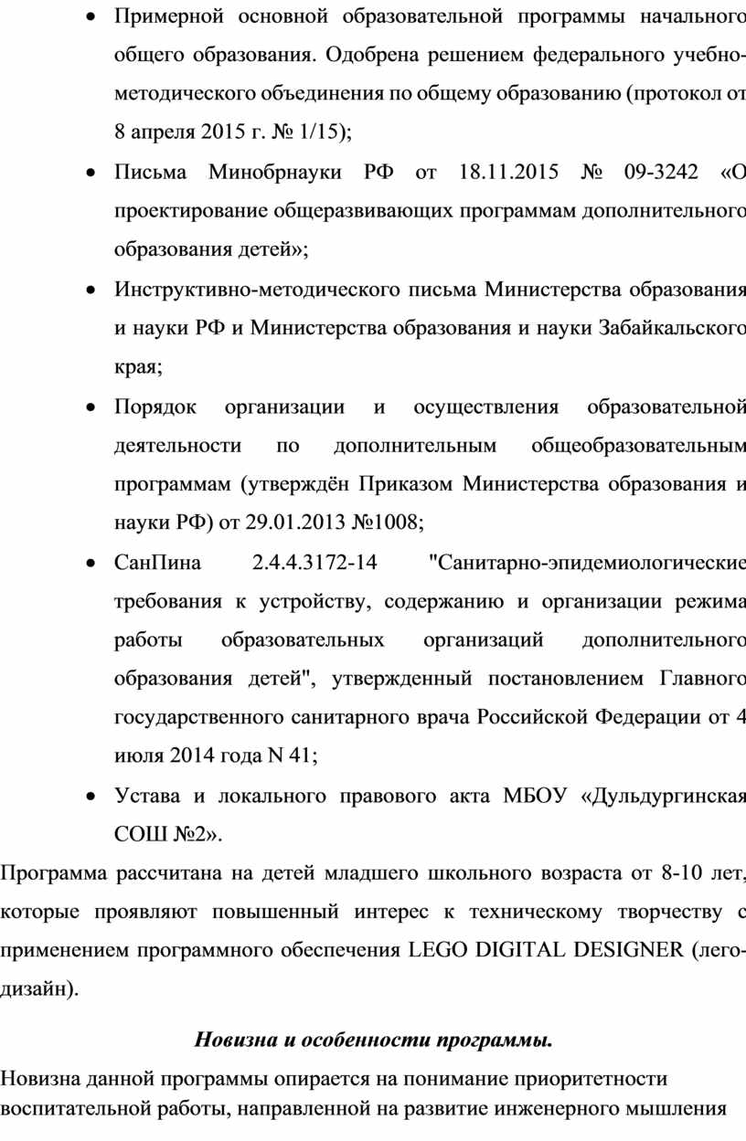 · Письма Минобрнауки РФ от 18.11.2015 № 09-3242 «О проектирование общеразвивающих программам дополнительного образования детей»;