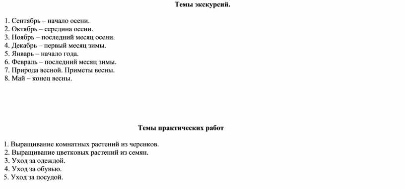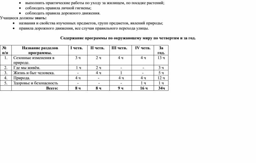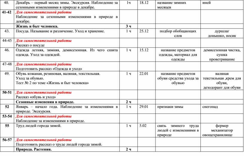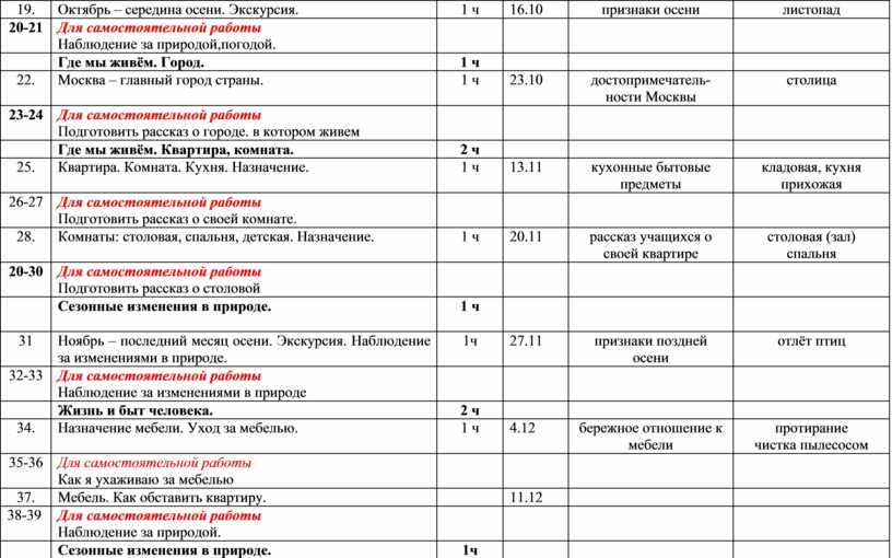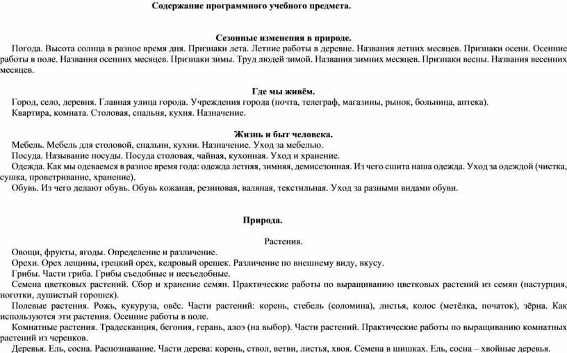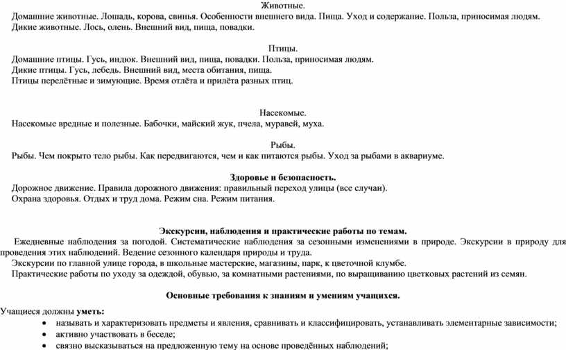 На экскурсиях учащиеся знакомятся с предметами и явлениями в естественной обстановке; на предметных уроках – на основе непосредственных чувственных восприятий. Наблюдая, учащиеся учатся анализировать, находить сходство и различие, делать простейшие выводы и обобщения. Практические работы помогают закреплению полученных знаний и умений. Наблюдения за погодой и сезонными изменениями в природе расширяют представления об окружающем мире, развивают внимание, наблюдательность, чувственное восприятие.