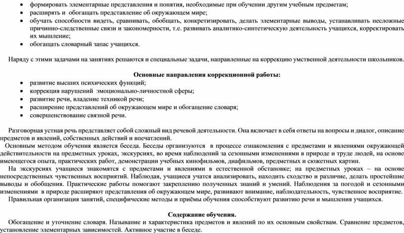 Наряду с этими задачами на занятиях решаются и специальные задачи, направленные на коррекцию умственной деятельности школьников.