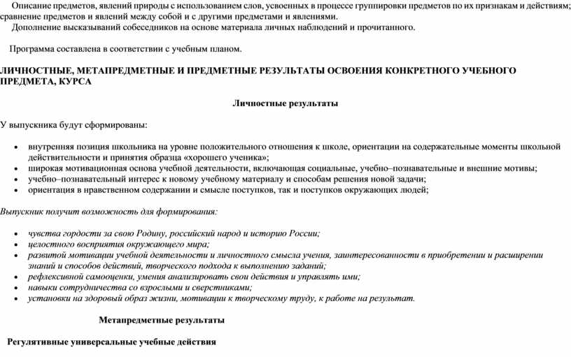ЛИЧНОСТНЫЕ, МЕТАПРЕДМЕТНЫЕ И ПРЕДМЕТНЫЕ РЕЗУЛЬТАТЫ ОСВОЕНИЯ КОНКРЕТНОГО УЧЕБНОГО ПРЕДМЕТА, КУРСА