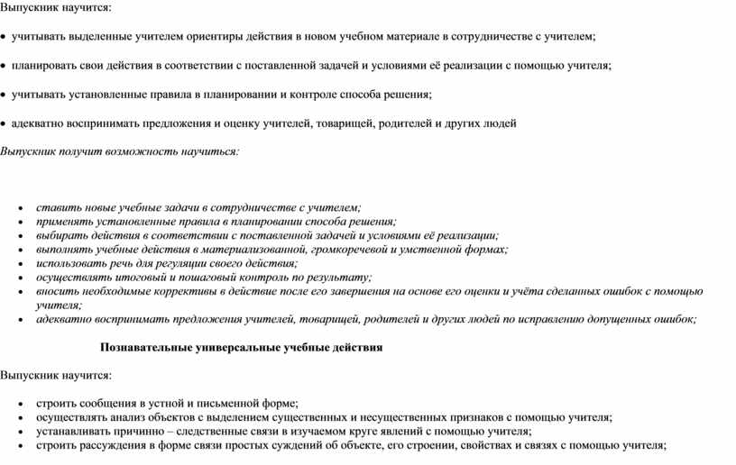 · выполнять учебные действия в материализованной, громкоречевой и умственной формах;