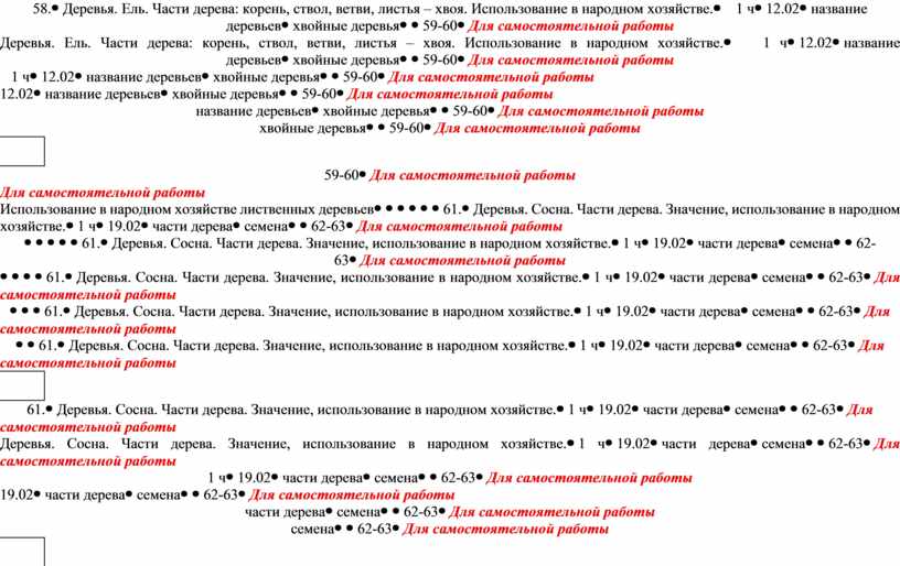 Для самостоятельной работы Рассказ о хвойных деревьях |