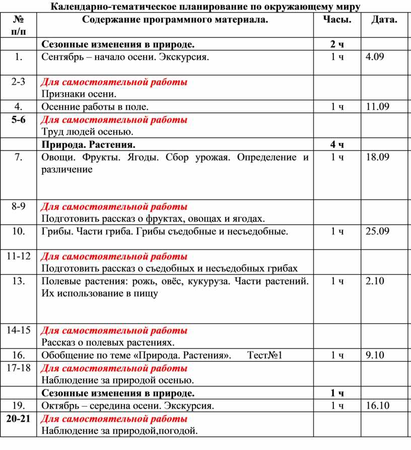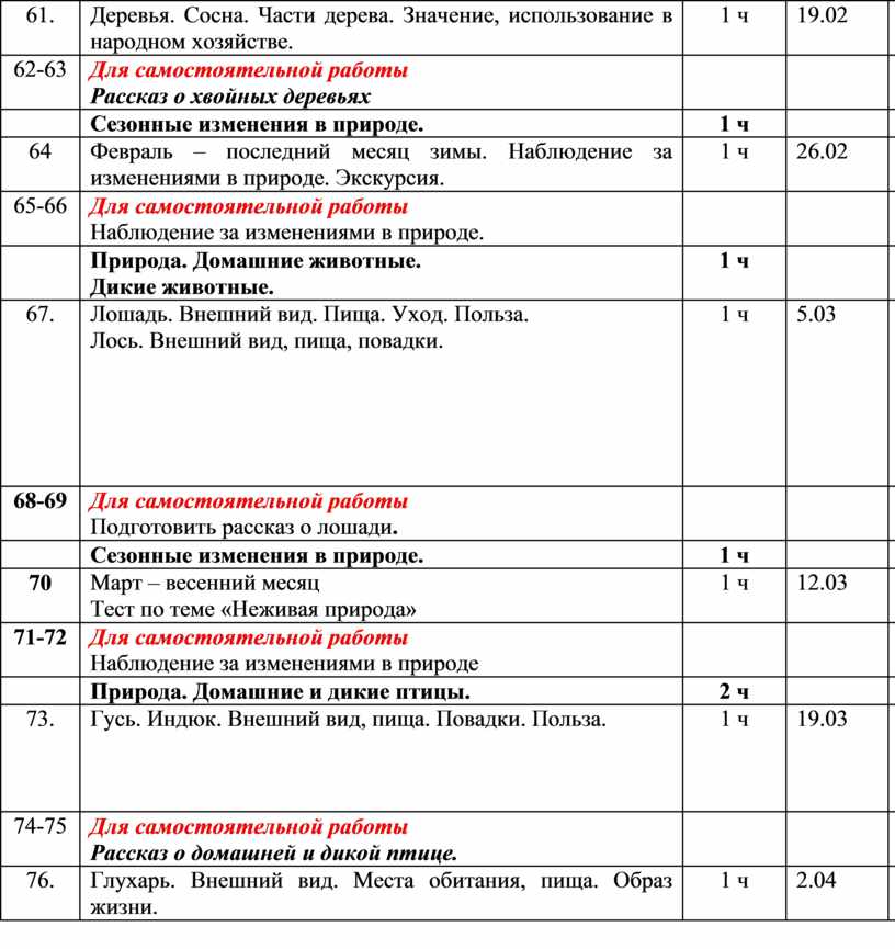 Для самостоятельной работы Наблюдение за природой . |