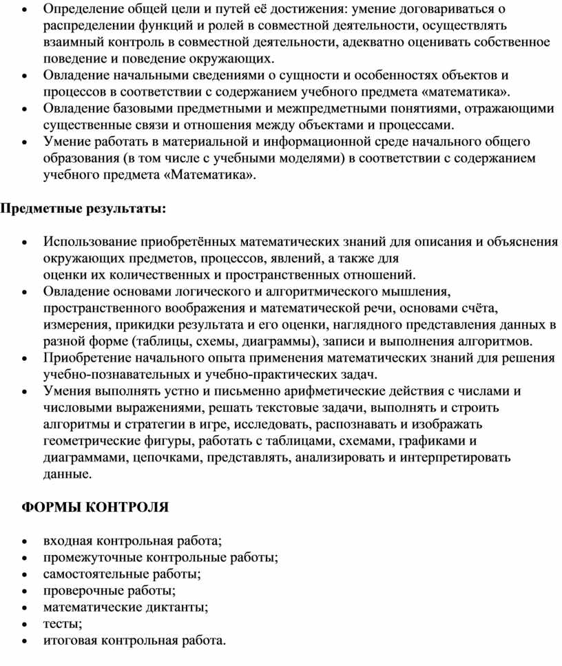 · Овладение основами логического и алгоритмического мышления, пространственного воображения и математической речи, основами счёта, измерения, прикидки результата и его оценки, наглядного представления данных в разной форме (таблицы, схемы, диаграммы), записи и выполнения алгоритмов.