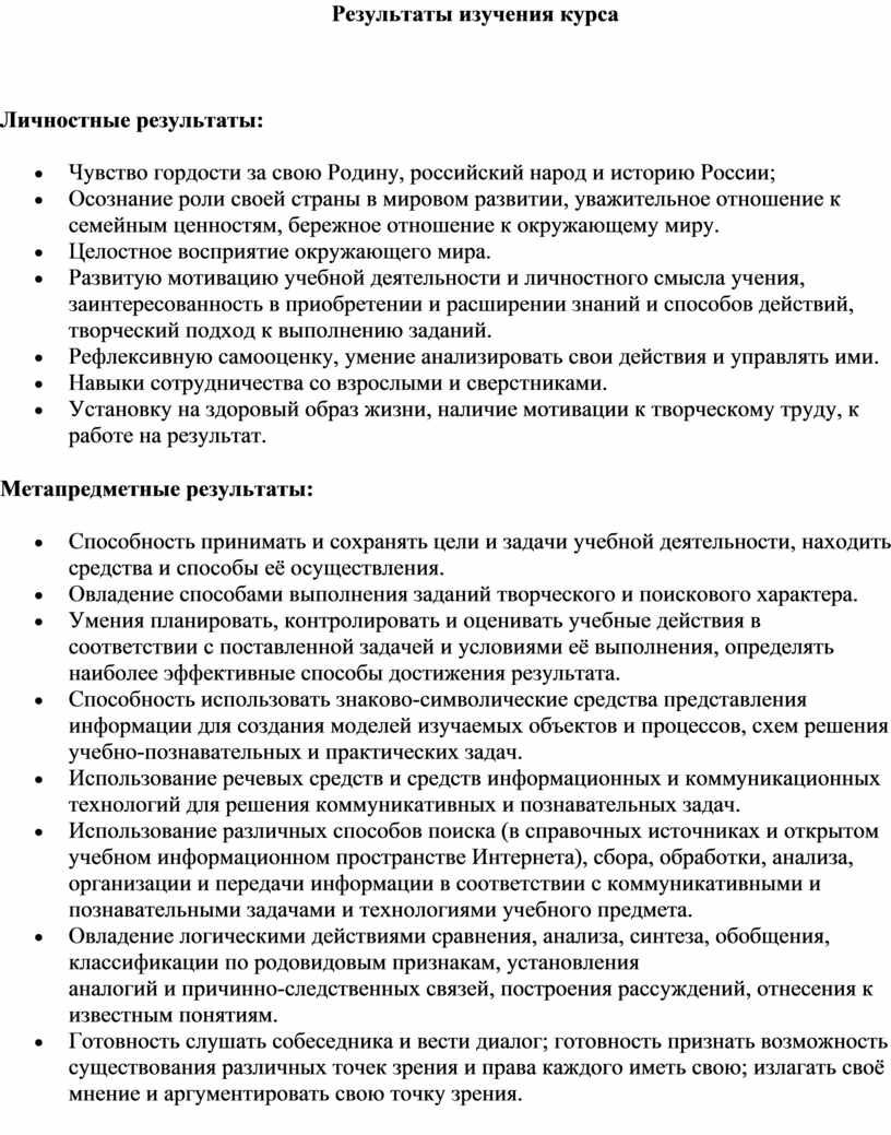 Результаты изучения курса