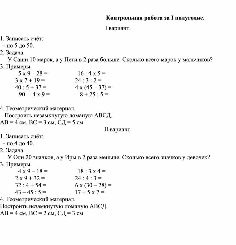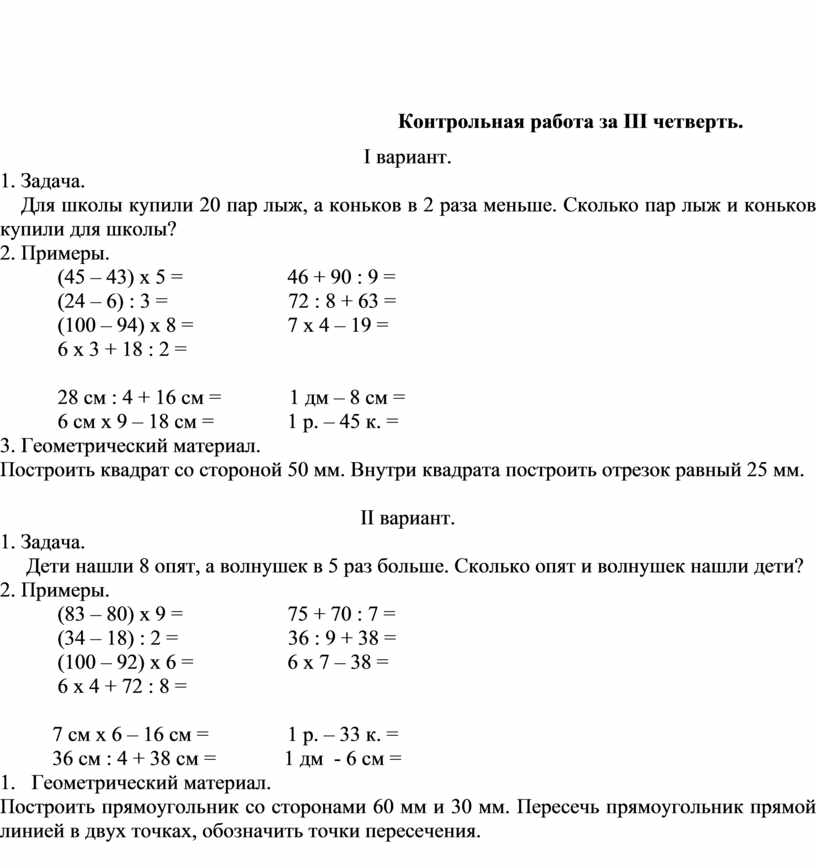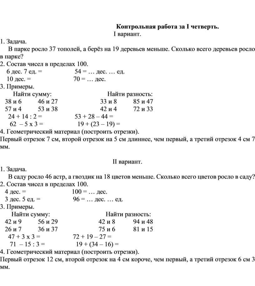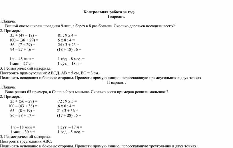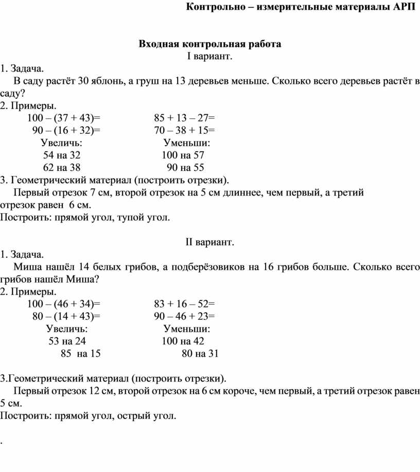 · входная контрольная работа;