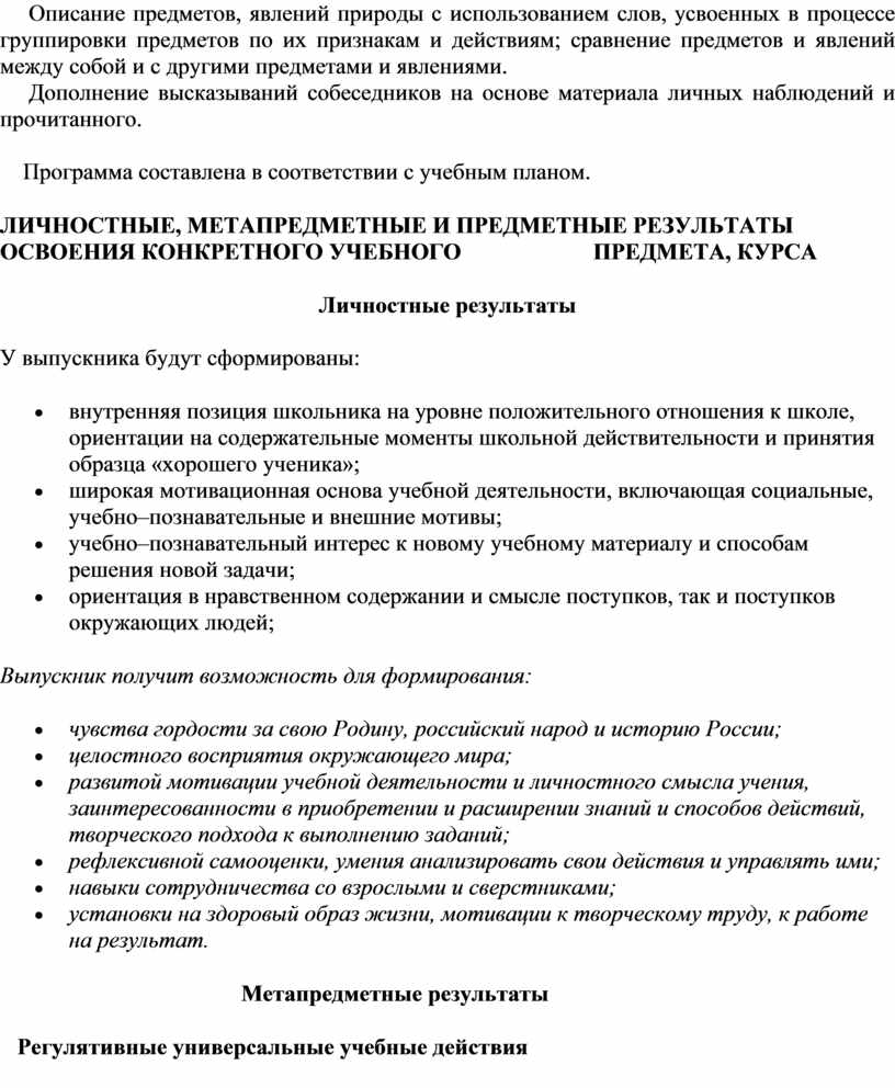 · Овладение базовыми предметными и межпредметными понятиями, отражающими существенные связи и отношения между объектами и процессами.