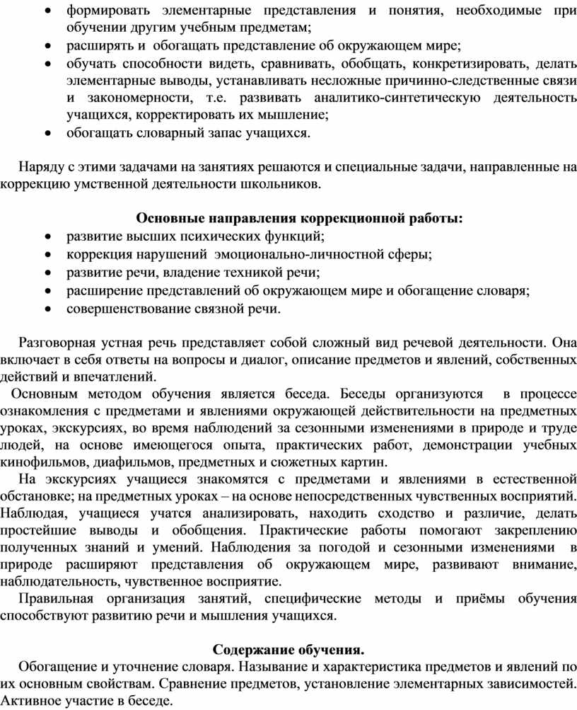 Наряду с этими задачами на занятиях решаются и специальные задачи, направленные на коррекцию умственной деятельности школьников.