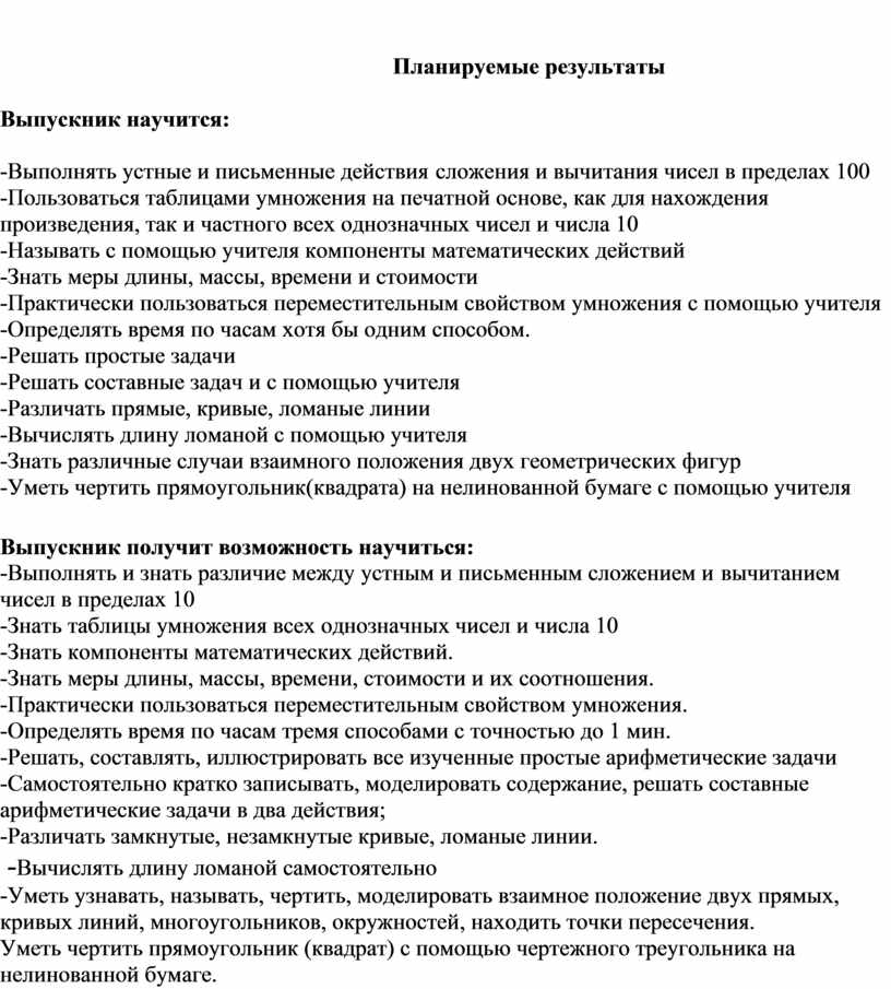 · Умения выполнять устно и письменно арифметические действия с числами и числовыми выражениями, решать текстовые задачи, выполнять и строить алгоритмы и стратегии в игре, исследовать, распознавать и изображать геометрические фигуры, работать с таблицами, схемами, графиками и диаграммами, цепочками, представлять, анализировать и интерпретировать данные.