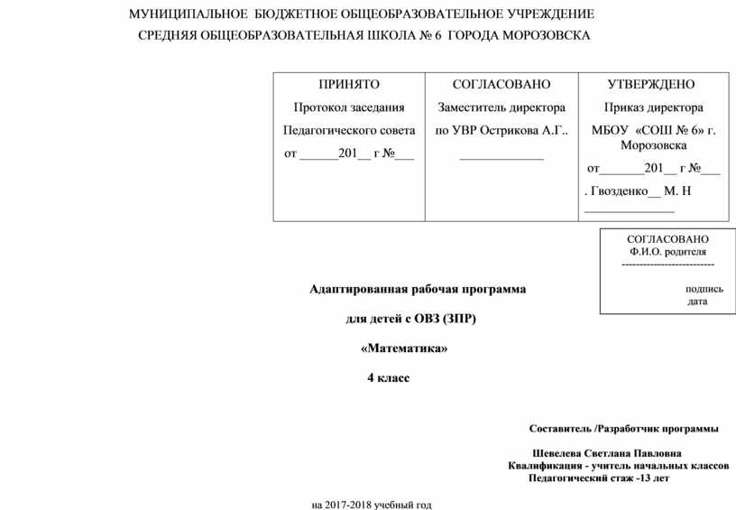 СРЕДНЯЯ ОБЩЕОБРАЗОВАТЕЛЬНАЯ ШКОЛА № 6 ГОРОДА МОРОЗОВСКА