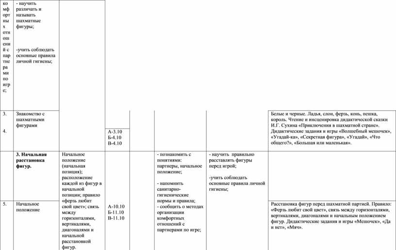 2. Сформировать умения играть каждой фигурой в отдельности и в совокупности с другими фигурами без нарушений правил шахматного кодекса.