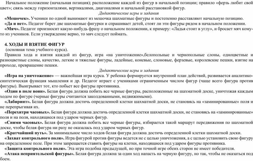 7. Научить играть каждой фигурой в отдельности и в совокупности с другими фигурами.