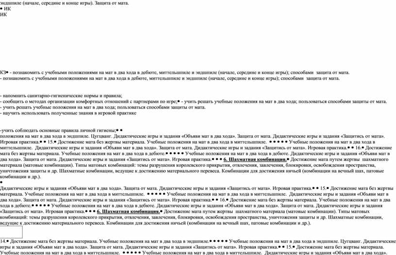 Учебные положения на мат в два хода в миттельшпиле. Дидактические игры и задания «Объяви мат в два хода». Защита от мата. Дидактические игры и задания «Защитись от мата». Игровая практика. |
