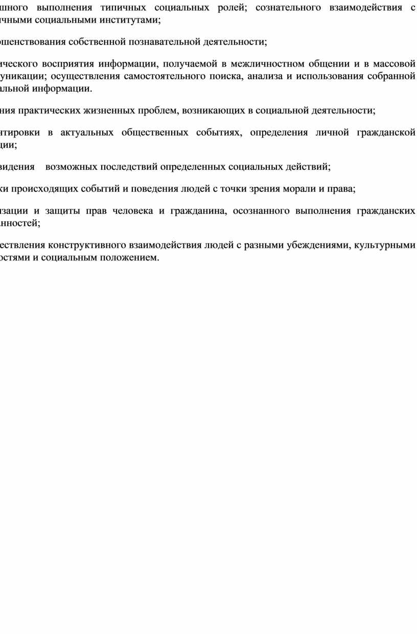 · успешного выполнения типичных социальных ролей; сознательного взаимодействия с различными социальными институтами;