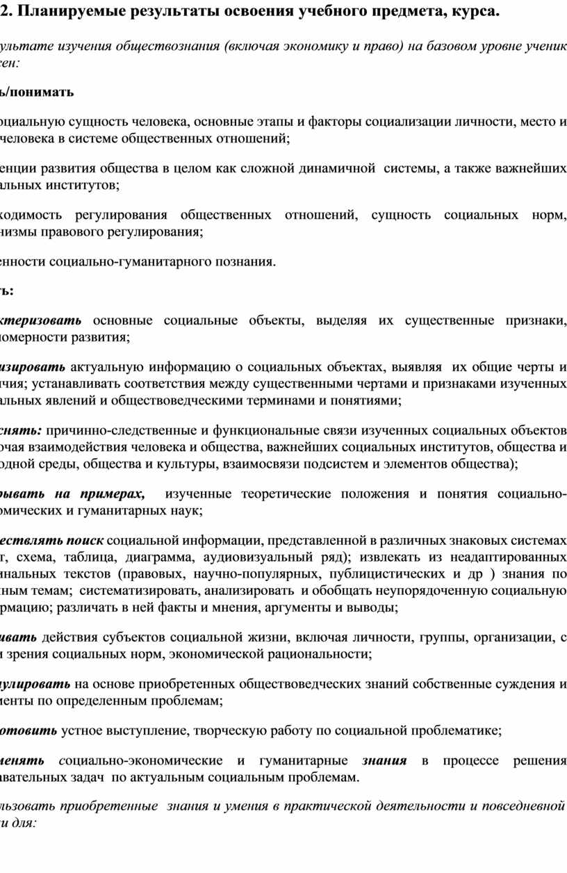В результате изучения обществознания (включая экономику и право) на базовом уровне ученик должен: