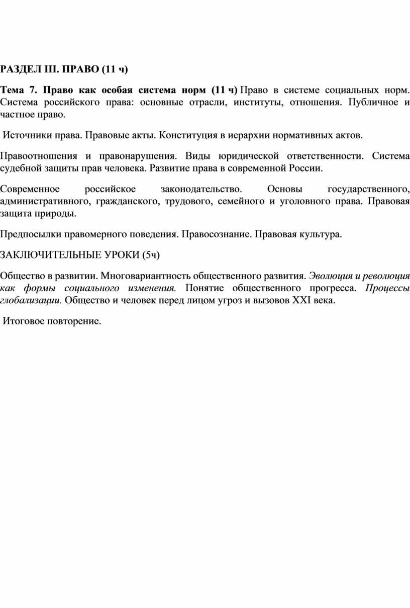РАЗДЕЛ III. ПРАВО (11 ч)