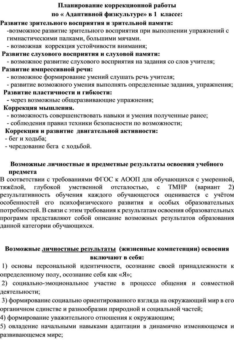 Занятия адаптивной физической культурой должны быть направлены по возможности на коррекцию дефектов физического развития и моторики, укрепления здоровья и выработку жизненно необходимых умений и навыков.