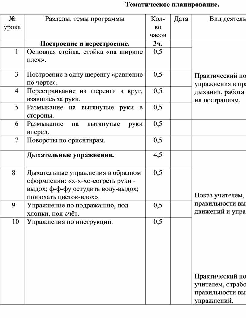 Грудное ,брюшное и полное дыхание в исходном положение «лёжа на спине», «сидя» и «стоя». |