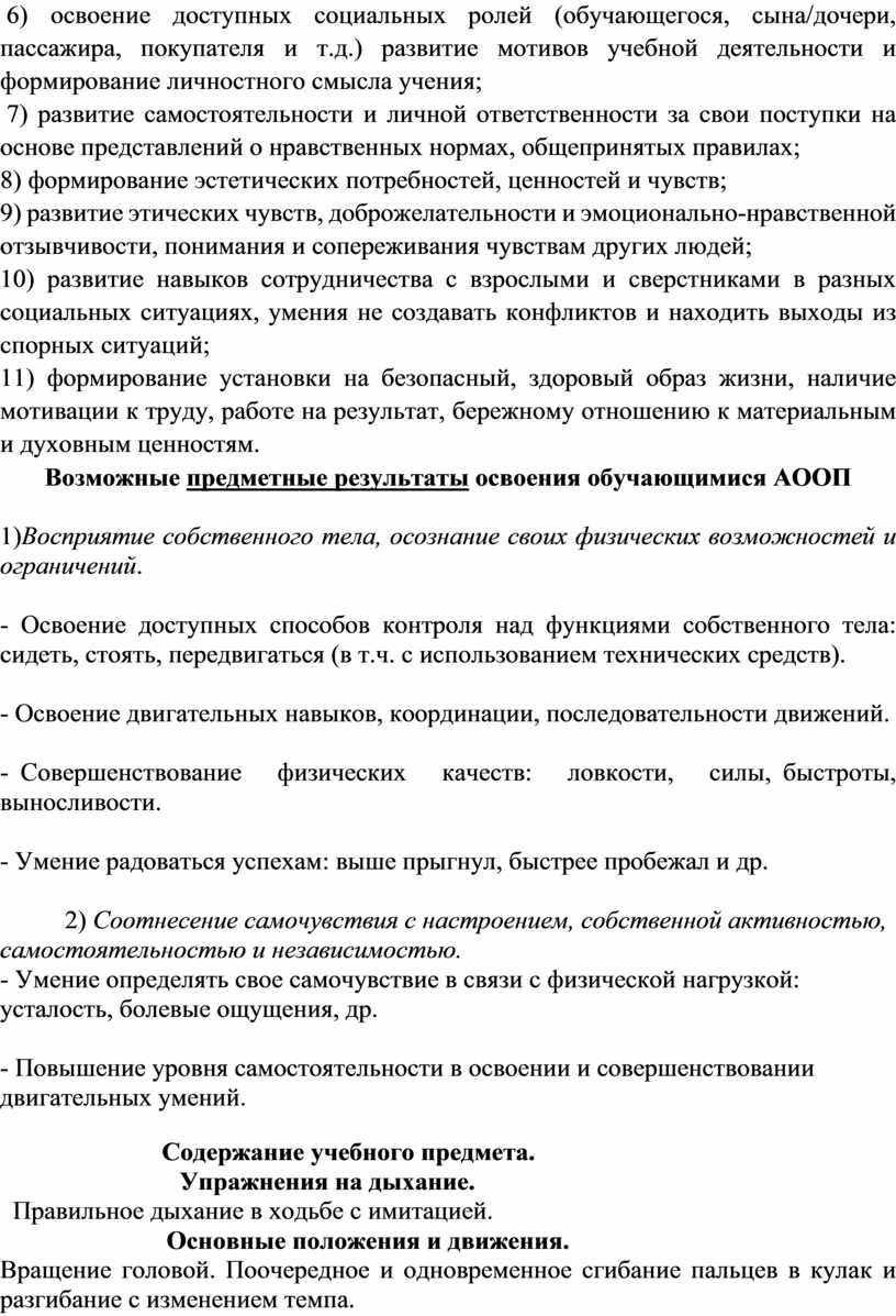 - Освоение доступных способов контроля над функциями собственного тела: сидеть, стоять, передвигаться (в т.ч. с использованием технических средств).