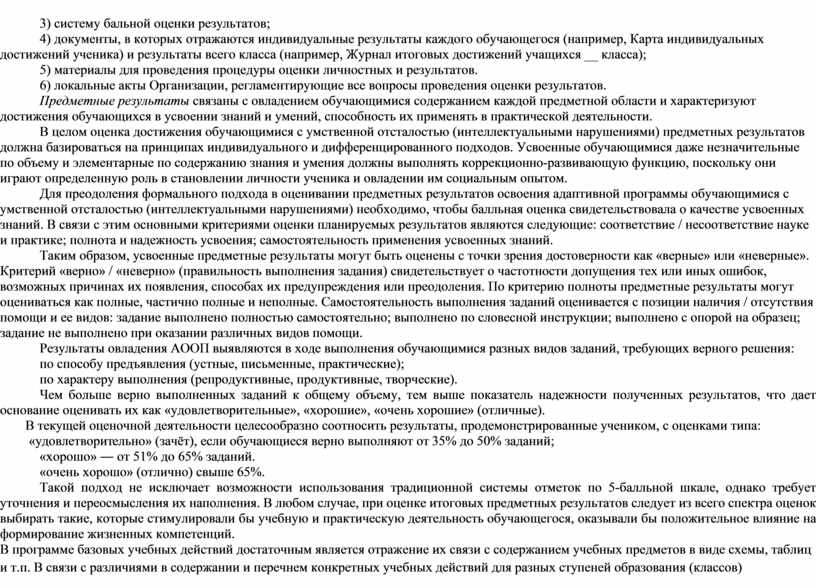 Эти принципы отражают целостность системы образования обучающихся с умственной отсталостью (интеллектуальными нарушениями), представляют обобщенные характеристики оценки их учебных и личностных достижений.