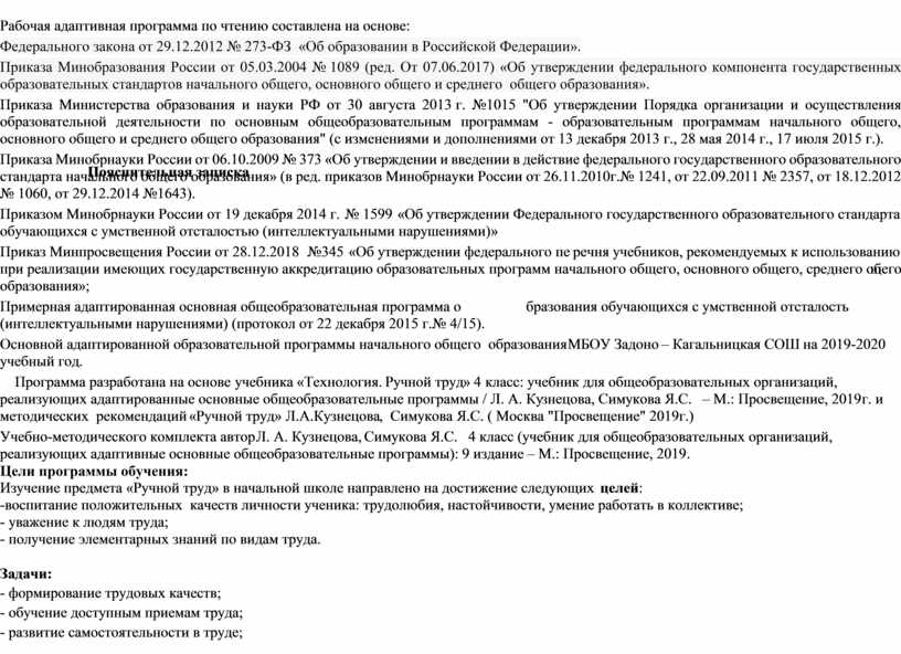 · Программа разработана на основе учебника «Технология. Ручной труд» 4 класс: учебник для общеобразовательных организаций, реализующих адаптированные основные общеобразовательные программы / Л. А. Кузнецова, Симукова Я.С. – М.: Просвещение, 2019г. и методических рекомендаций «Ручной труд» Л.А.Кузнецова, Симукова Я.С. ( Москва "Просвещение" 2019г.)