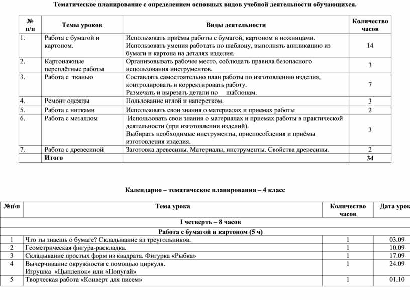 Тематическое планирование с определением основных видов учебной деятельности обучающихся.
