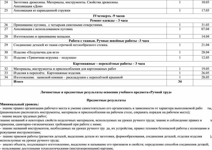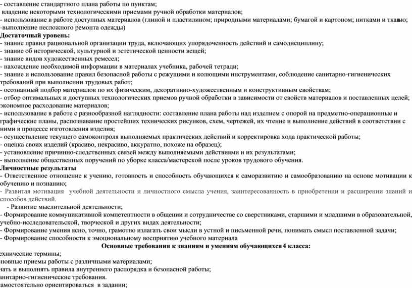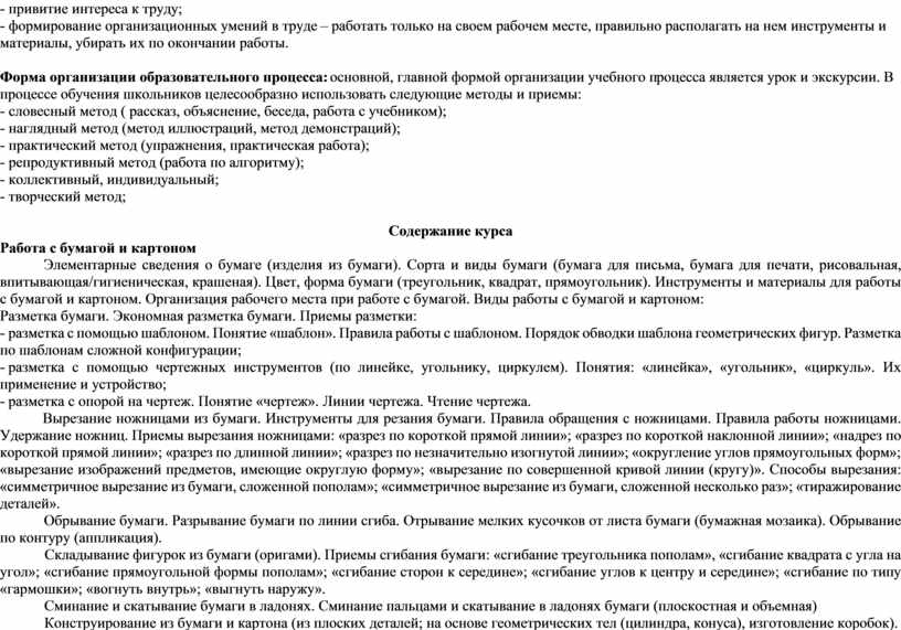 - отбор оптимальных и доступных технологических приемов ручной обработки в зависимости от свойств материалов и поставленных целей; экономное расходование материалов;