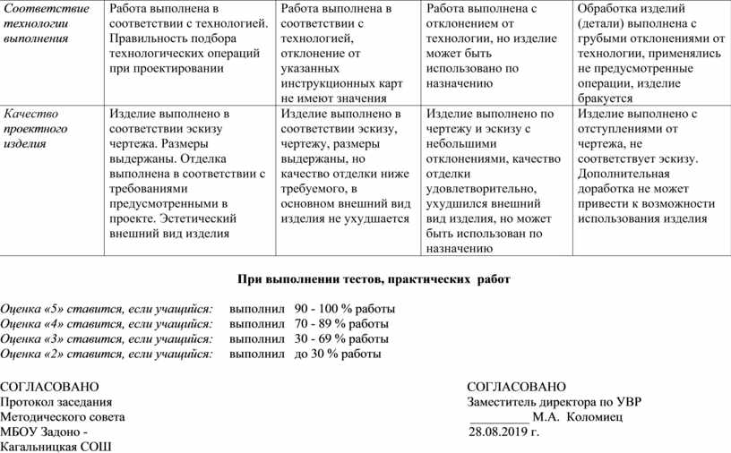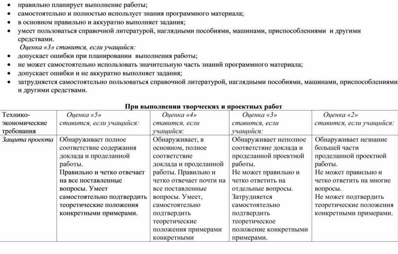 Печатный вариант. Соответствие требованиям последовательности выполнения проекта. Грамотное, полное изложение всех разделов. Наличие и качество наглядных материалов Соответствие технологических разработок современным требованиям. Эстетичность выполнения. |