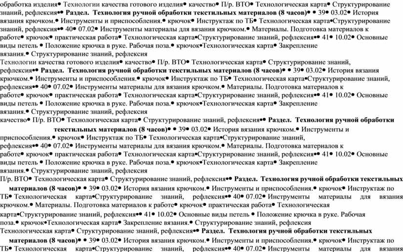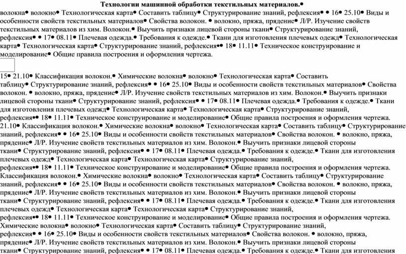 Раздел 5. Технологии машинной обработки текстильных материалов.