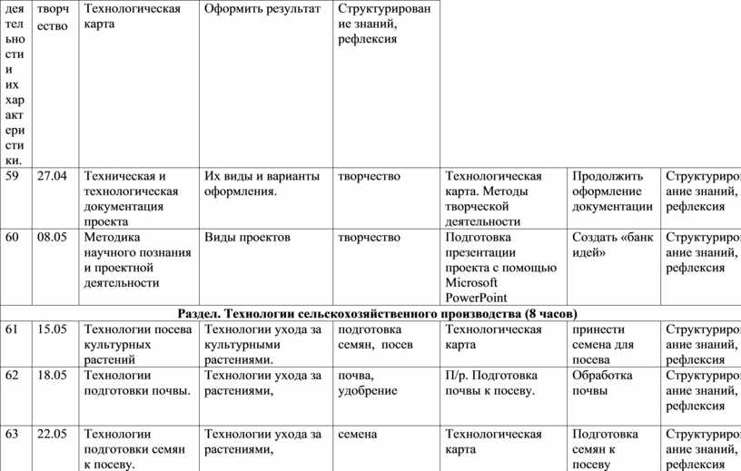 Творческая, проектная деятельность: Виды технологической деятельности и основные теоретические сведения. Значение опытов сельскохозяйственных и правила их проведения. Выбор и утверждение тем проектов: консультационная информация по этапам проектирования, поиск недостающей информации, составление плана выполнения проекта.