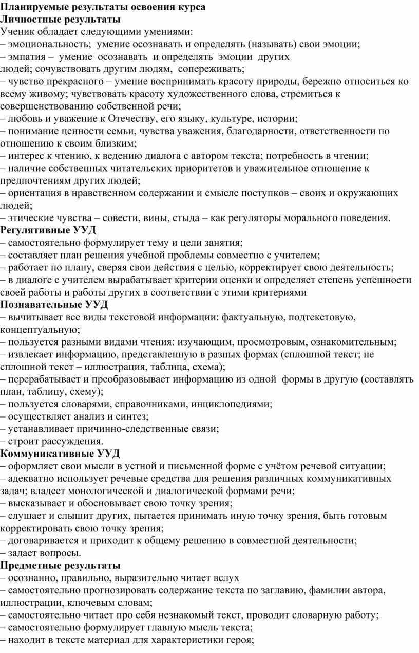 чтение», выстроены в соответствии с основными задачами предмета «Литературное