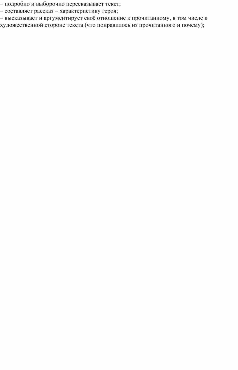 · выработка привычки к вдумчивому чтению, умение применять в процессе самостоятельного чтения все знания, умения и навыки, полученные на уроках литературного чтения.