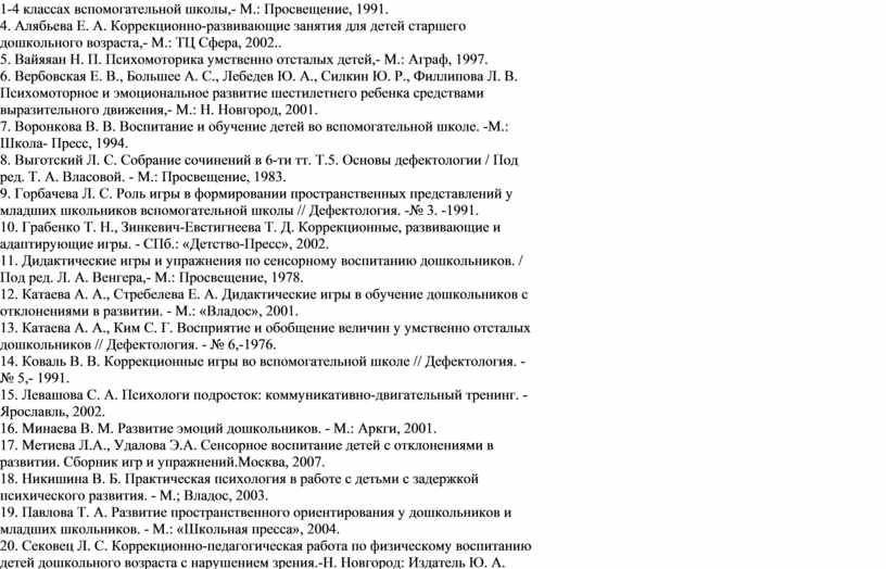 5. Вайяяан Н. П. Психомоторика умственно отсталых детей,- М.: Аграф, 1997.