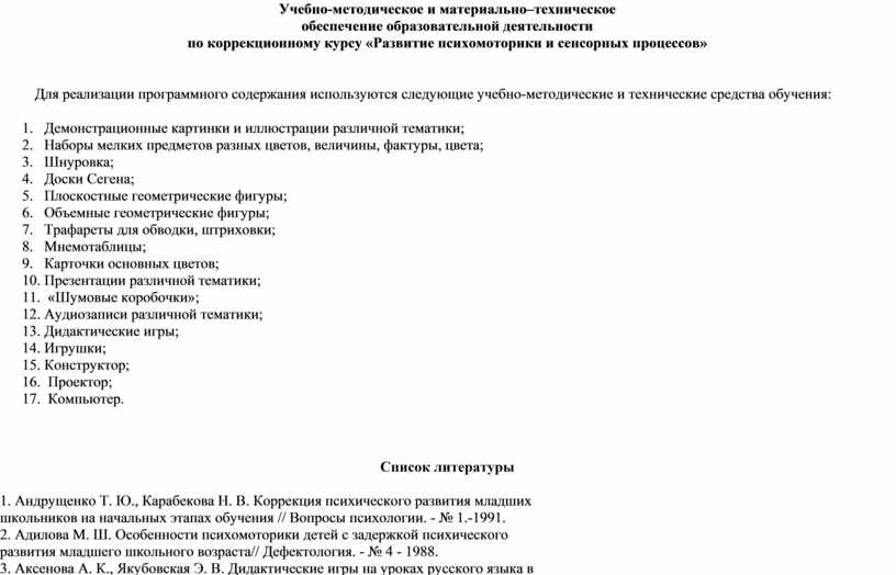 1. Андрущенко Т. Ю., Карабекова Н. В. Коррекция психического развития младших