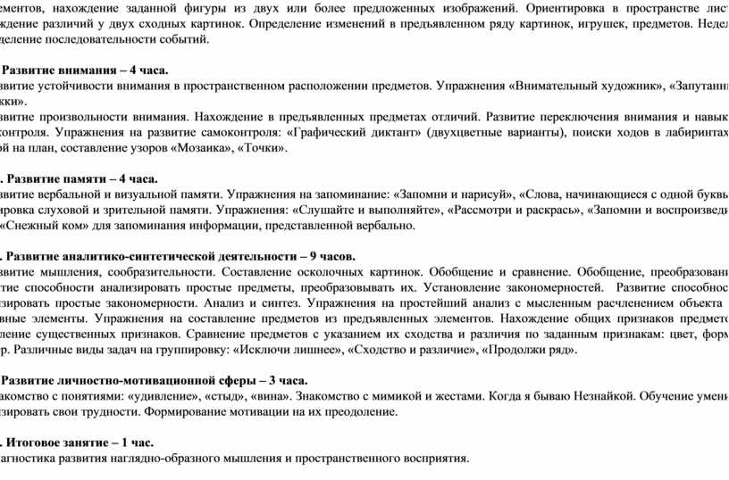 3. развитие психических функций внимания, памяти, восприятия, воображения;