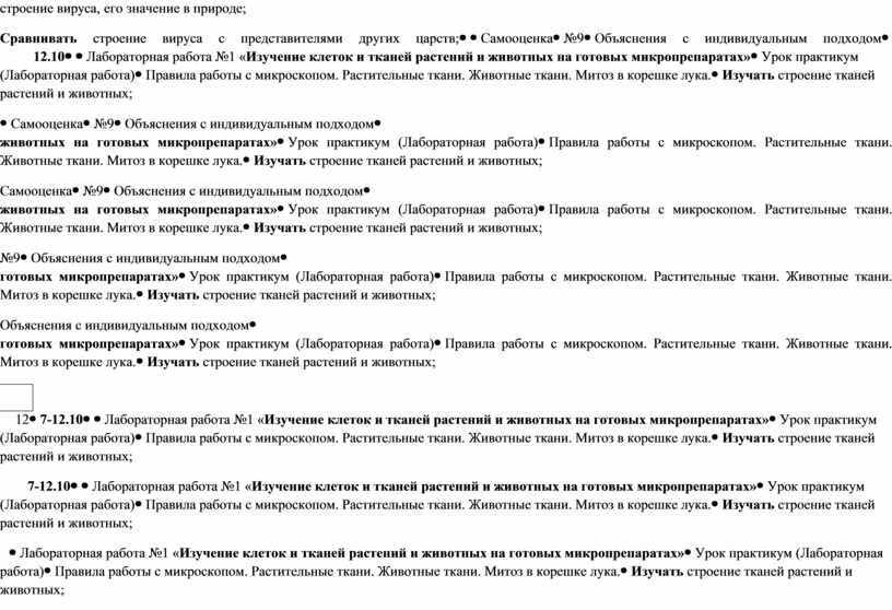 Лабораторная работа №1 «Изучение клеток и тканей растений и животных на готовых микропрепаратах» |