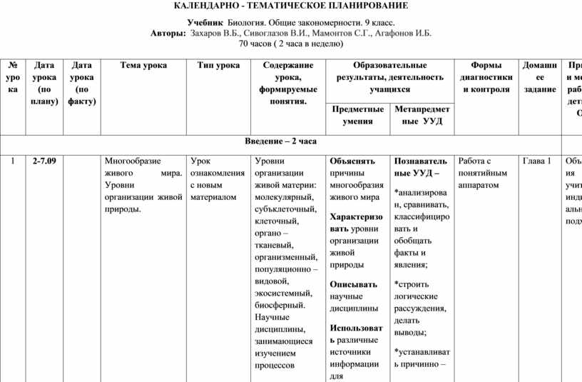 Согласно действующему Базисному учебному плану рабочая программа для 9-го класса предусматривает обучение биологии в объеме 2 часа в неделю (70 часов в год).