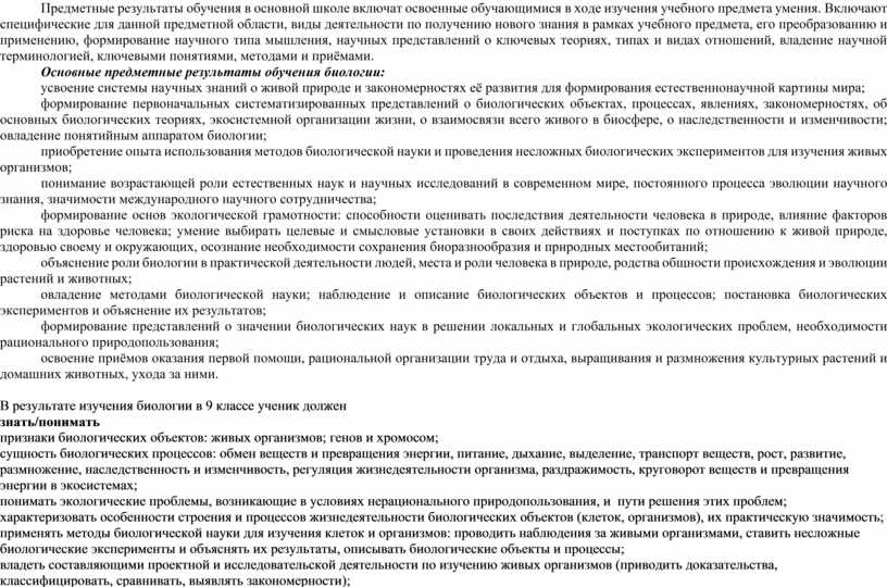 Отличительная черта современности – возрастание интереса к человеку как предмету познания. В 9 классе учащиеся получают знания об основных законах жизни на всех уровнях её организации, знакомятся с современными достижениями в области биологии, осознают место человека в биосфере и его ответственность за состояние природы. В курсе также проходятся основы цитологии, генетики, селекции, теория эволюции. Учебный курс «Биология», в содержании которого ведущим компонентом являются научные знания, научные методы познания, практические умения и навыки, позволяет сформировать у учащихся эмоционально-ценностное отношение к изучаемому материалу, создать условия для формирования компетенции в интеллектуальных, гражданско-правовых, коммуникационных и информационных областях.