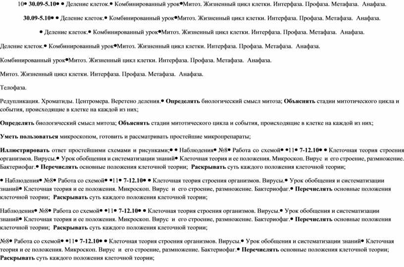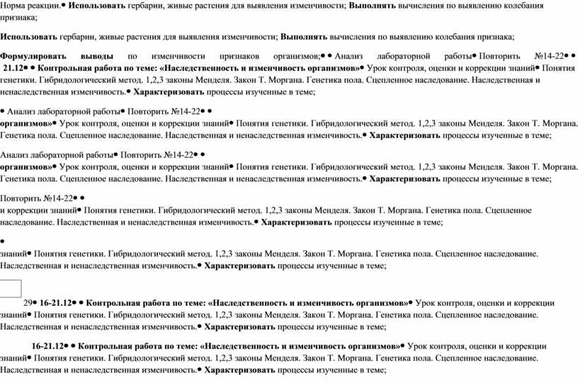 По окончании изучения каждой темы планируется повторение и обобщение материала.