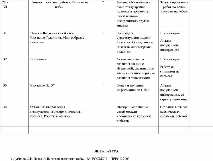1.Дубкова С.И. Засов А.В. Атлас звёздного неба. – М. РОСМЭН – ПРЕСС.2003
