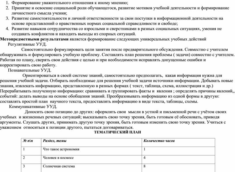 Метопредметными результатами является формирование следующих универсальных учебных действий