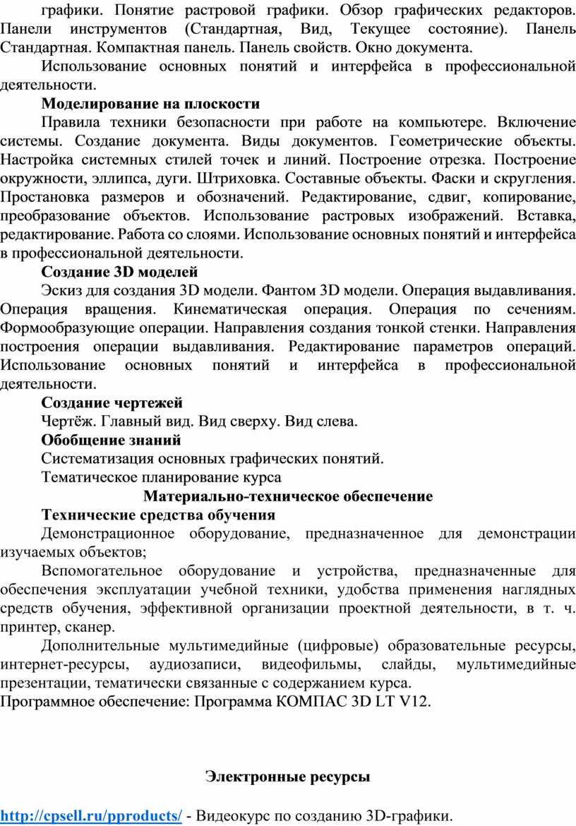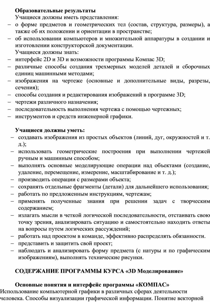 СОДЕРЖАНИЕ ПРОГРАММЫ КУРСА «3D Моделирование»