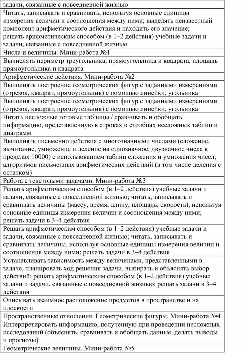 Решать арифметическим способом (в 1–2 действия) учебные задачи и задачи, связанные с повседневной жизнью; читать, записывать и сравнивать величины (массу, время, длину, площадь, скорость), используя основные единицы измерения величин и соотношения между ними; решать задачи в 3–4 действия |