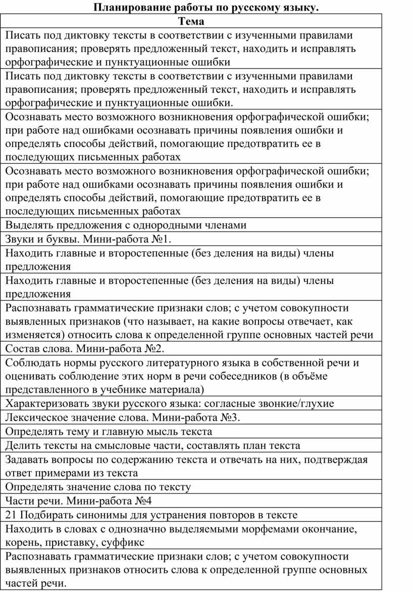 Осознавать место возможного возникновения орфографической ошибки; при работе над ошибками осознавать причины появления ошибки и определять способы действий, помогающие предотвратить ее в последующих письменных работах |