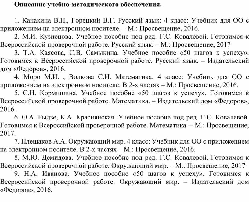 1. Канакина В.П., Горецкий В.Г. Русский язык: 4 класс: Учебник для ОО с приложением на электронном носителе. – М.: Просвещение, 2016.