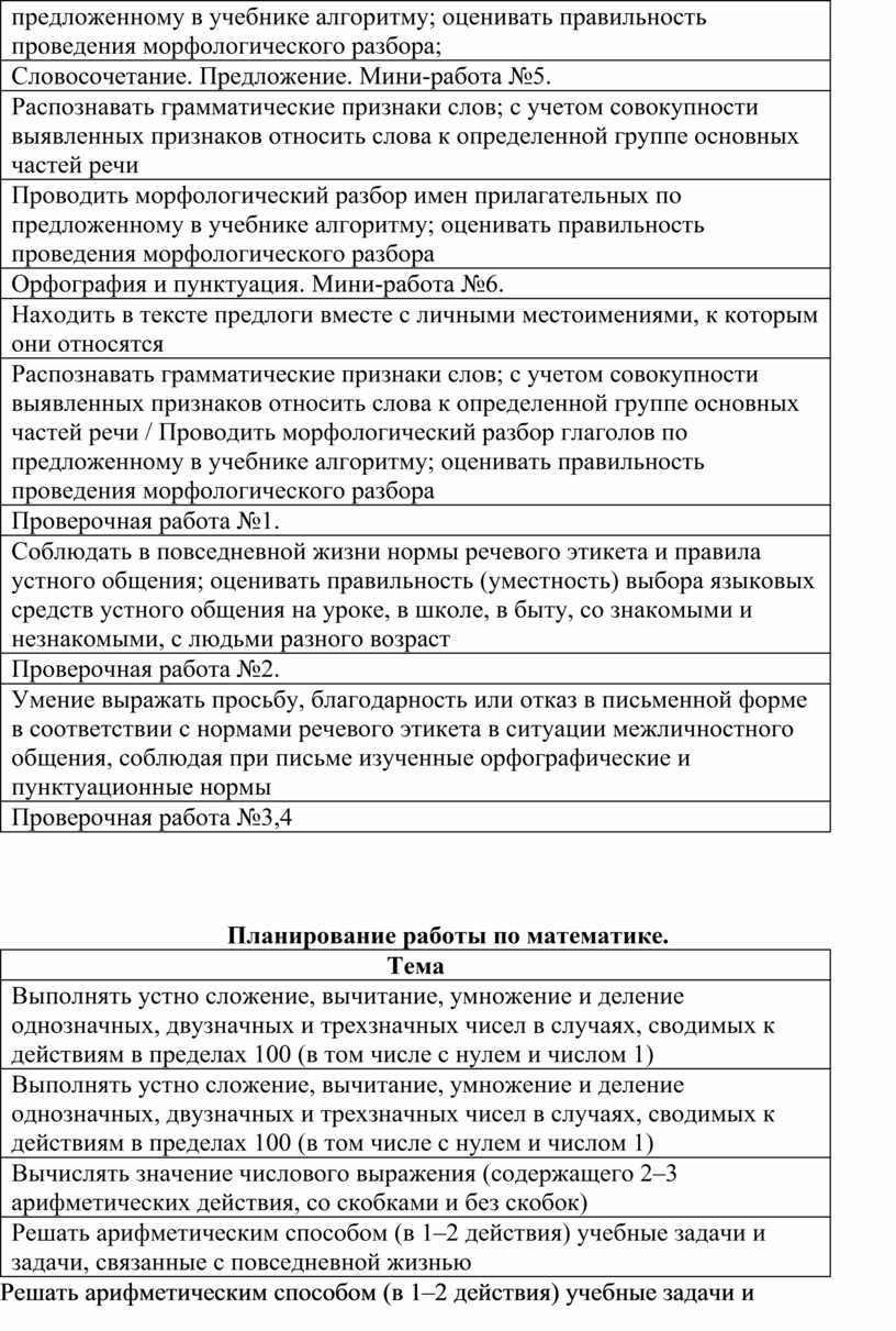 Планирование работы по математике.