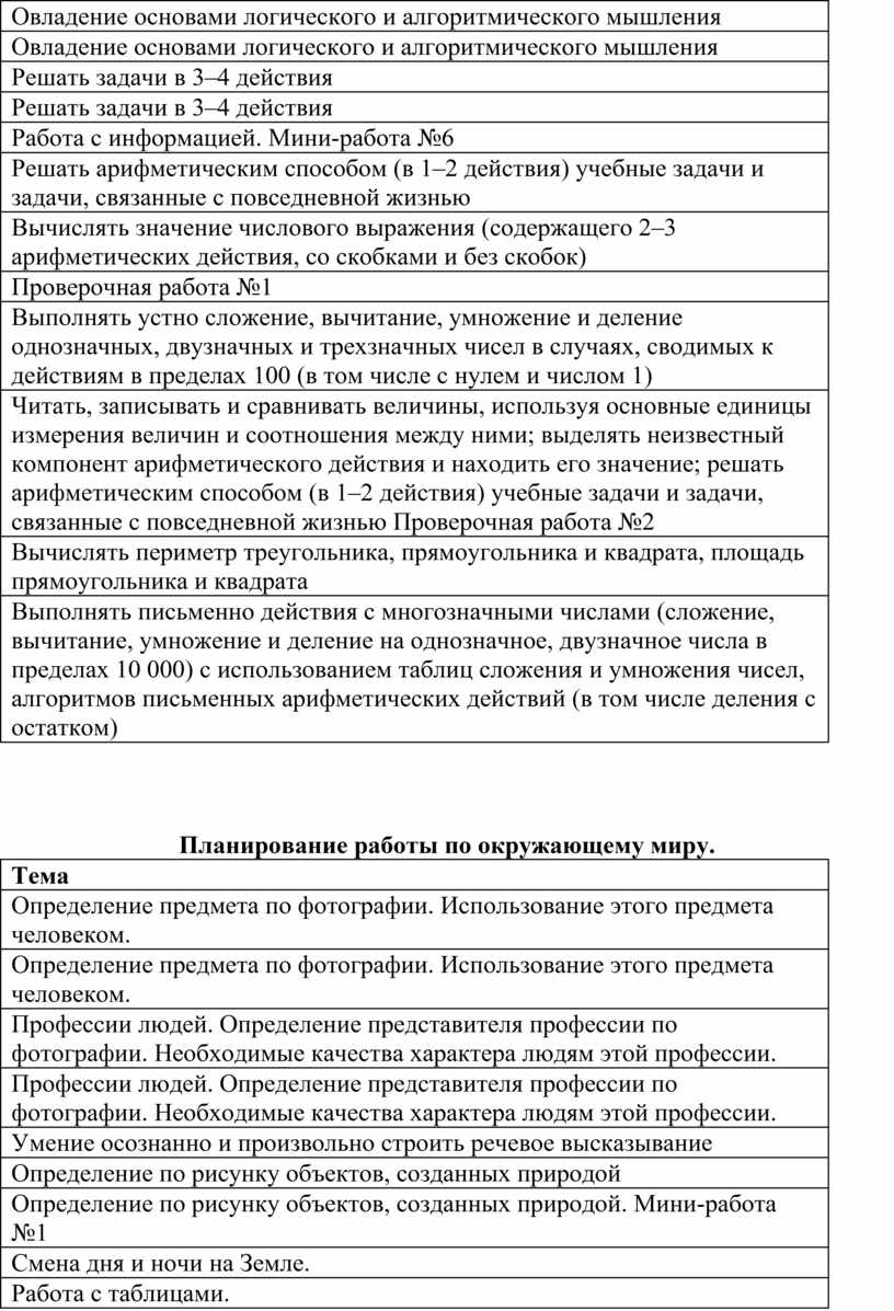 Планирование работы по окружающему миру.