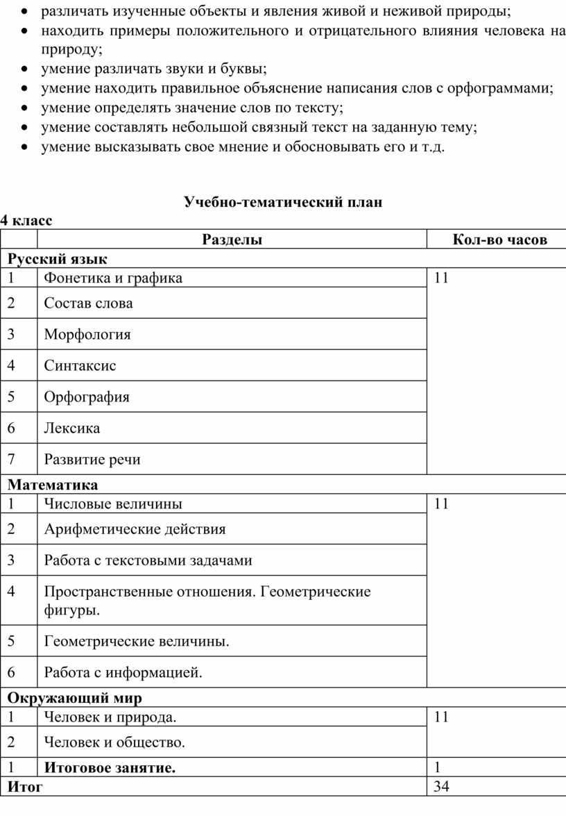 Русский язык, математика, окружающий мир: